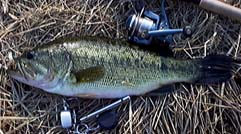 | 今日は初夏のように暖かく水温も17度と前回より5度も高いのでもしかしたらFLYでしかもDRY(TOP)で いけるかもしれないと思い最初はポッパーで釣り始めました。30分後、懐かしいゴボッ!という音がしてFLY が見えなくなり合わせたのですが手元に少し重みを感じただけでバレてしまいました。その後、2回バイトが あったのですが乗りませんでした。1時間半経過後、やっと今年のFLYでの初バスをGETしましたが12センチ の子バスでした。 まだ、FLYには時期が早いと感じルアーにチェンジしインレット側から西に移動しながら3匹 のバスを釣り、岬についての第3投目ロッドがグンと重くなり一瞬、根が掛かりかな?と思ったのですが次の瞬 間15メー トルほど先で大きなバスがジャンプしました。「これはデカイ!」もう心臓はバクバク状態です。「これは絶対 に取るぞ」と 慎重に時間をかけて寄せてGETしたのが写真のバスです。47センチの自己最高記録でした。 | ![]() |